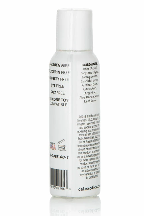 Ingredients: Water (aqua), propylene glycol, carrageenan, colloidal silver, xanthan gum, citric acid, arginine and aloe barbadensis leaf juice.