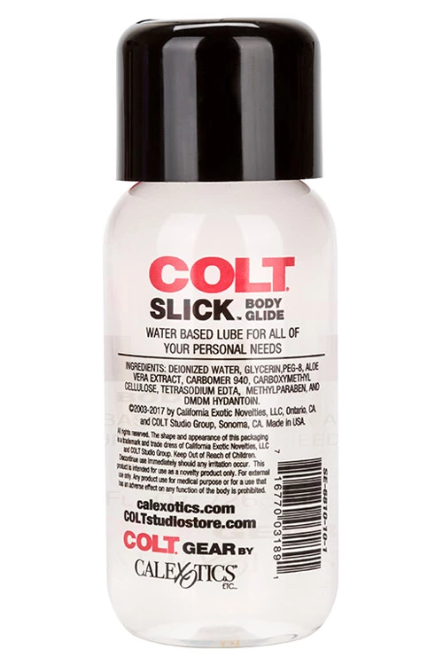 Another great product from California Exotic, Colt Slick Body Glide is a water-based lube for all of your personal needs. Intimate toy and condom safe!
