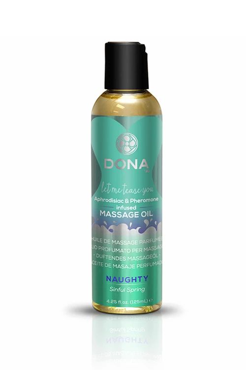 Sinful Spring Massage Oil by DONA is infused with a soothing blend of enchanting aphrodisiacs and pheromones to increase your desirability and enhance your naughty mood!