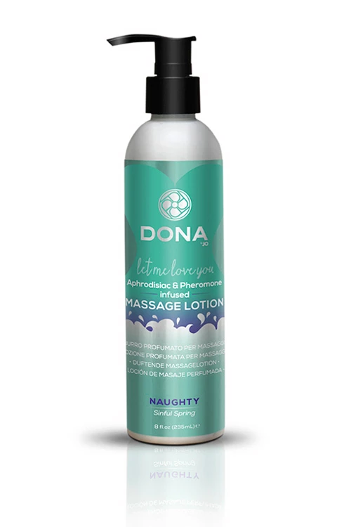 Sinful Spring Massage Lotion by DONA is infused with a soothing blend of enchanting aphrodisiacs and pheromones to increase your desirability and enhance your naughty mood!