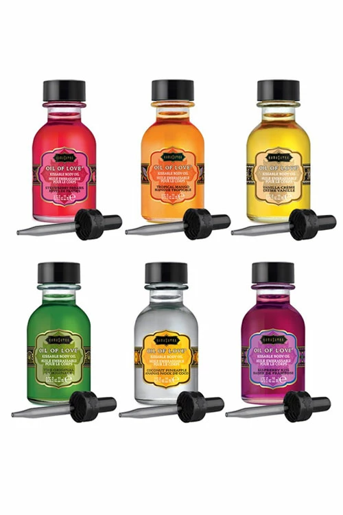 Excite even more senses during foreplay with this tempting set of six flavoured body oils.
